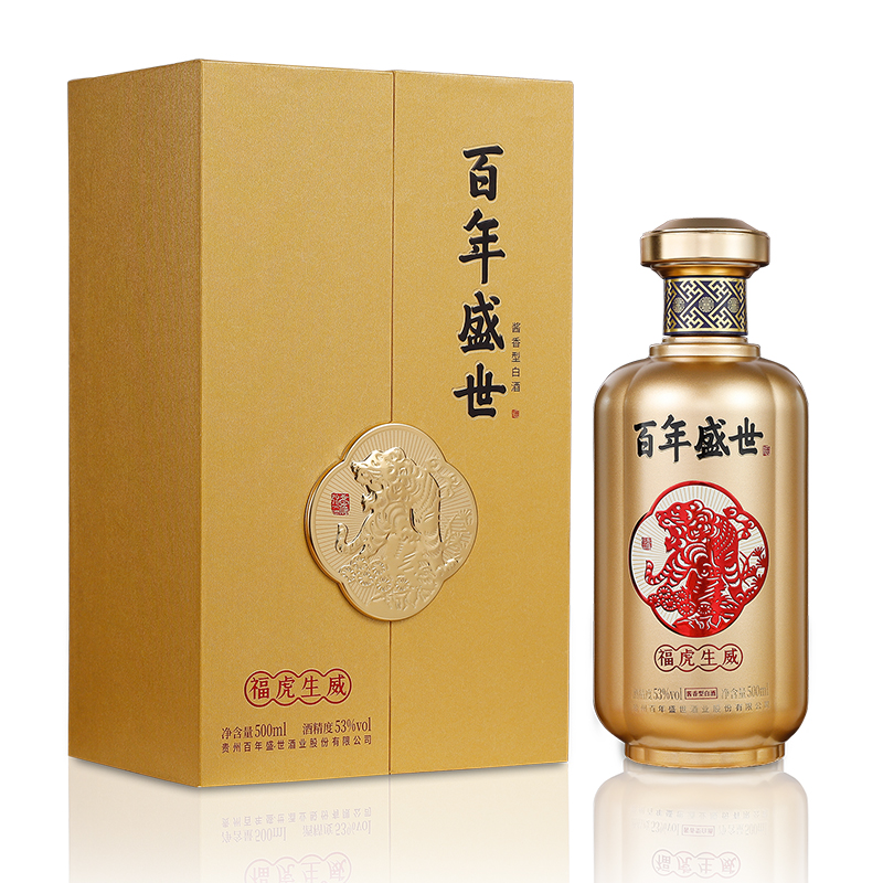 贵州省茅台镇 百年盛世 福虎生威 金色 53度 酱香型白酒 500ML*6瓶 整箱
